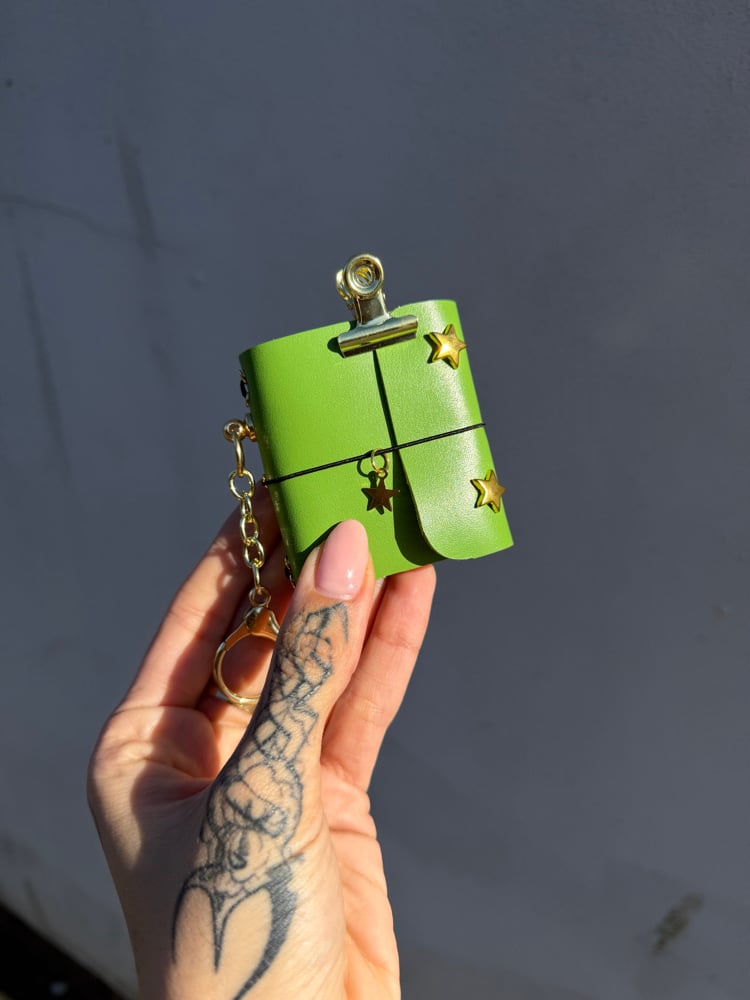 Baby Betsy is a green, Italian leather tiny tri fold journal bag charm/keyring with a luxurious natural grain, smooth texture and refined satin finish.