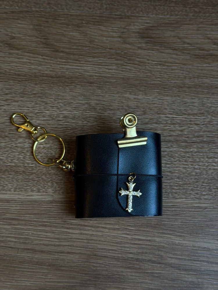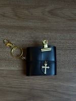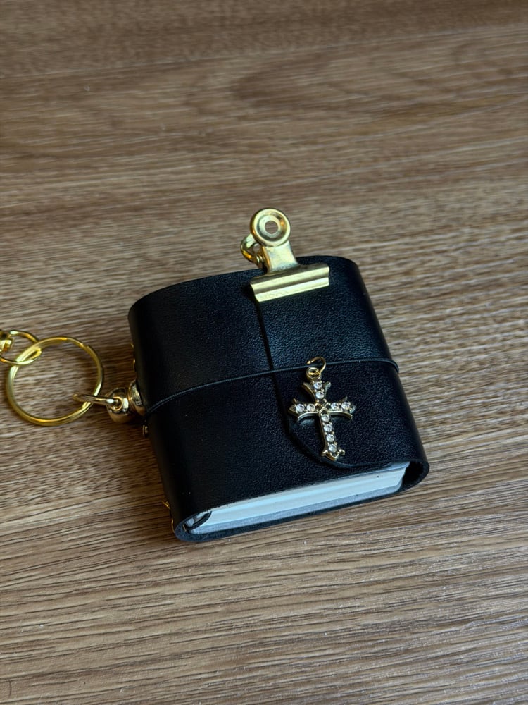 Baby Bella is a black, Italian leather tiny tri fold journal bag charm/keyring with a luxurious natural grain, smooth texture and refined satin finish.