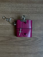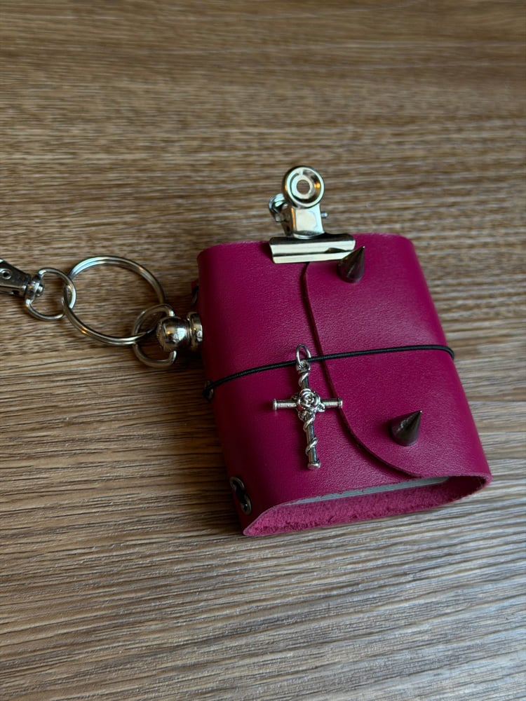 Baby Bridget is a hot pink, Italian leather tiny tri fold journal bag charm/keyring with a luxurious natural grain, smooth texture and refined satin finish.