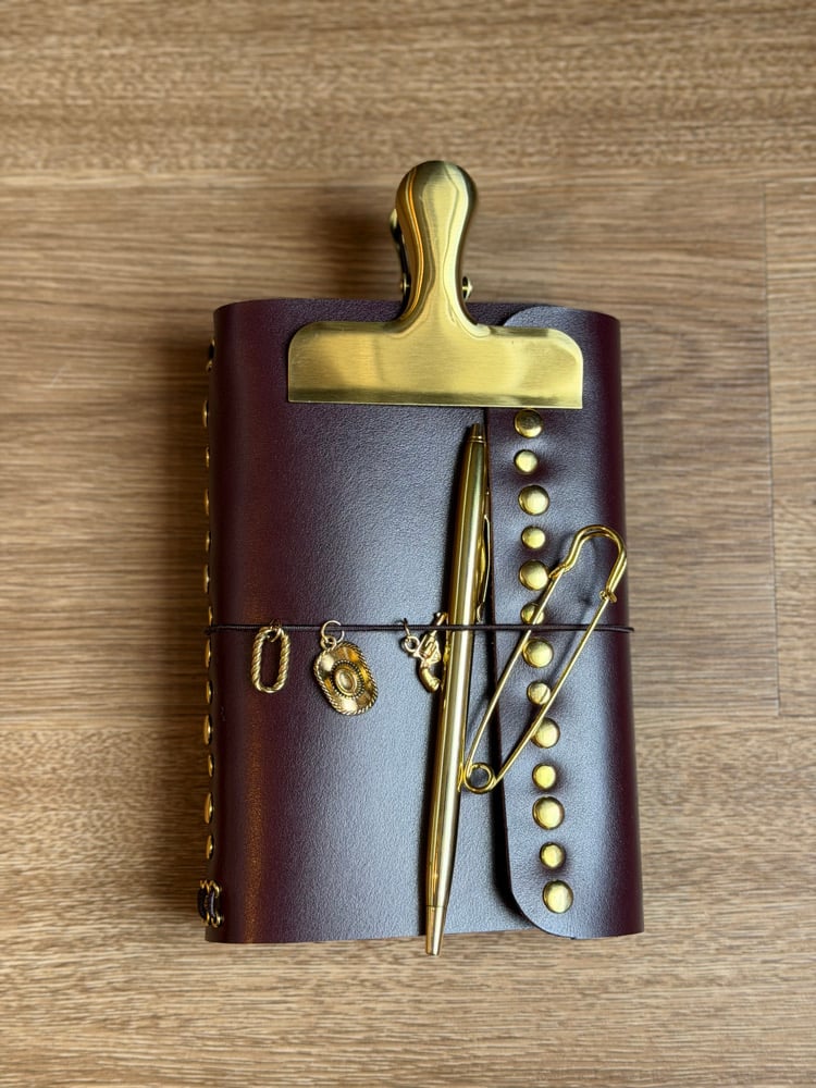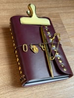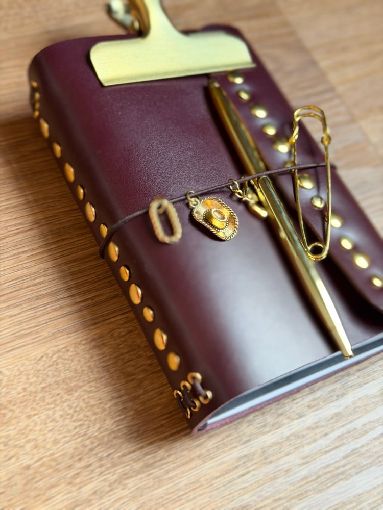 Celeste is a gorgeous burgundy purple Italian leather a6 tri fold journal with a luxurious smooth texture and satin finish.
