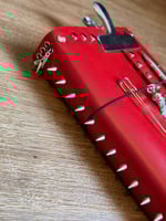 Dahlia is a vibrant red Italian leather a5 tri fold journal with a luxurious natural grain, smooth texture and refined satin finish.