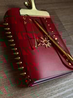 Fallon is a stunning vibrant red Italian leather a6 tri fold journal with a luxurious smooth texture and satin finish.