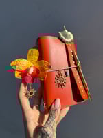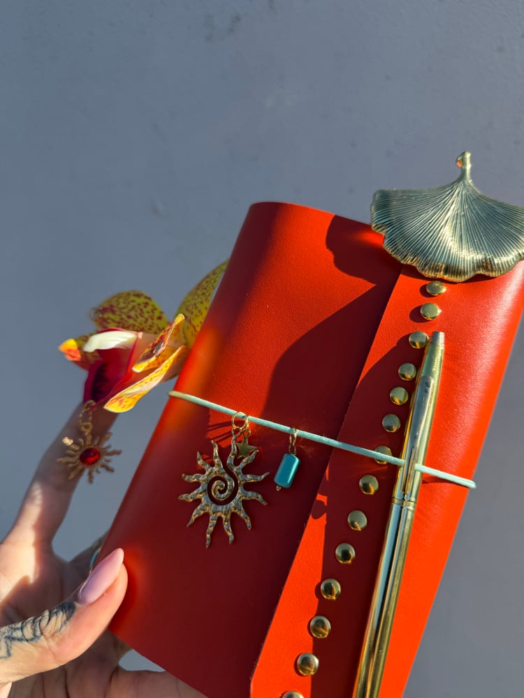 Florence is a gorgeous vibrant orange Italian leather a6 tri fold journal with a luxurious smooth texture and satin finish.