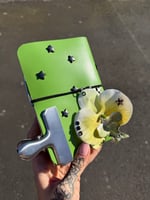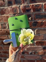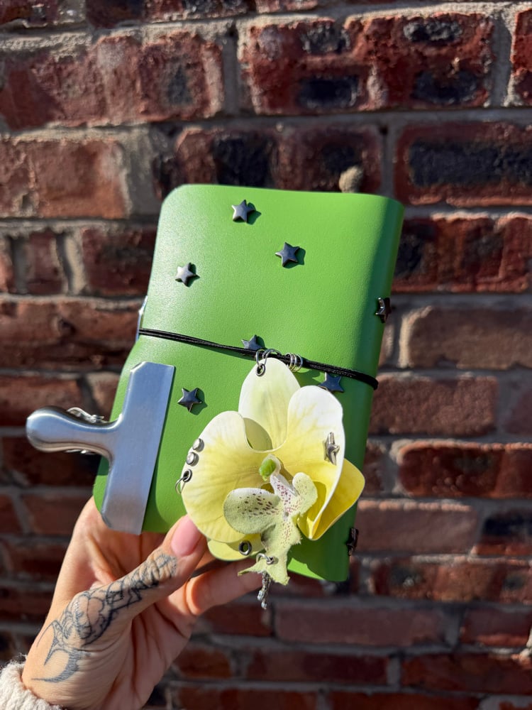 Genevive is a gorgeous vibrant green Italian leather a6 tri fold journal with a luxurious smooth texture and satin finish.