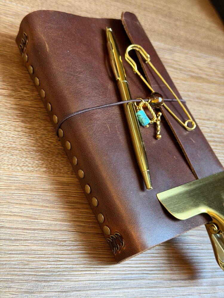 Jesse is a gorgeous worn rich brown Italian leather a6 tri fold journal.