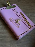 Pammy is a baby pink bombshell, Italian leather a5 tri fold journal with a luxurious natural grain, smooth texture and refined satin finish.