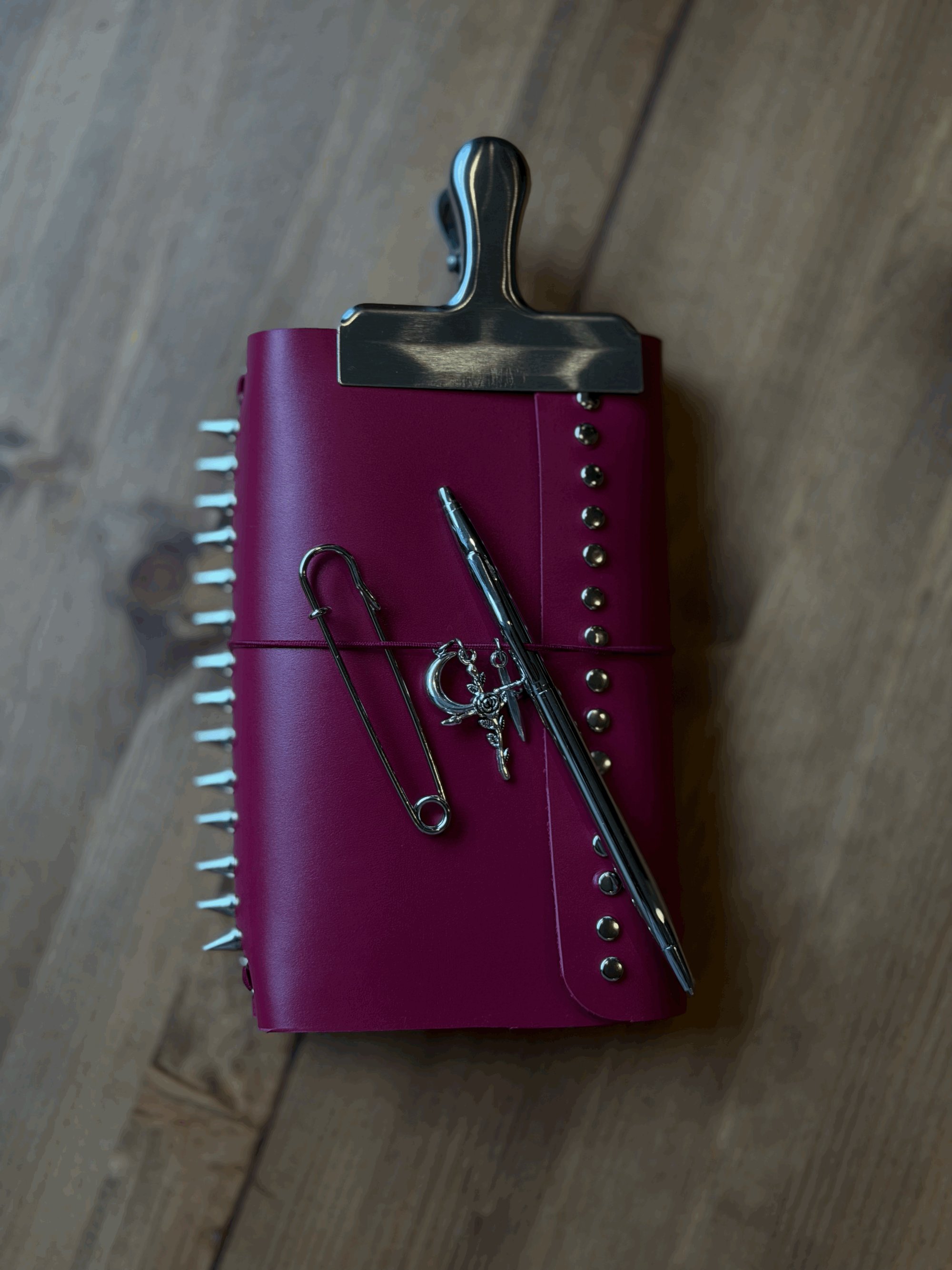 Suzie a sexy queen, she's a hot rose pink Italian leather a6 tri fold journal with a luxurious natural grain, smooth texture and refined satin finish. This product is reusable and the material with age with you.