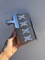 • Silver pen, large silver clip.