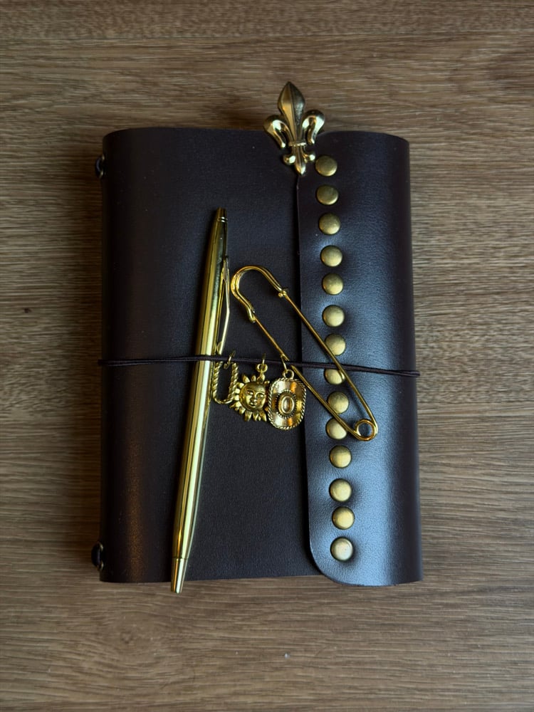 Willow is a rich brown Italian leather a6 tri fold journal with a luxurious smooth texture and satin finish.